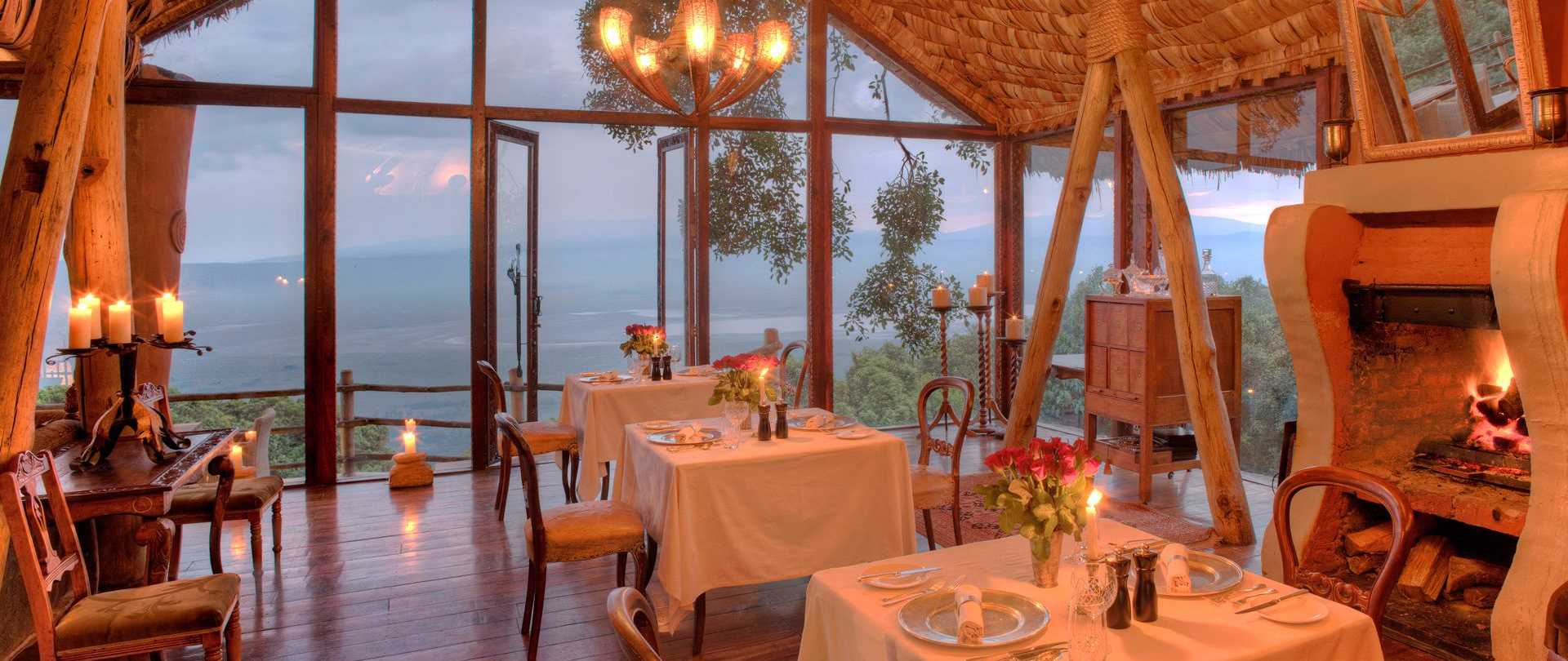 El Ngorongoro Crater Lodge es un regreso a la elegancia de los viajes coloniales. Inspirado en el diseño del Masai Manyatta. El Lodge tiene tres campamentos separados de 6 a 12 suites cada uno. Cada una de las suites recuerda a épocas antiguas, con grandes candelabros y tesoros coleccionados de viajes alrededor de Africa.
